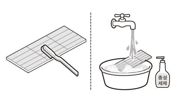 - 필터는 분리 후 물로 세척, 그늘에서 건조